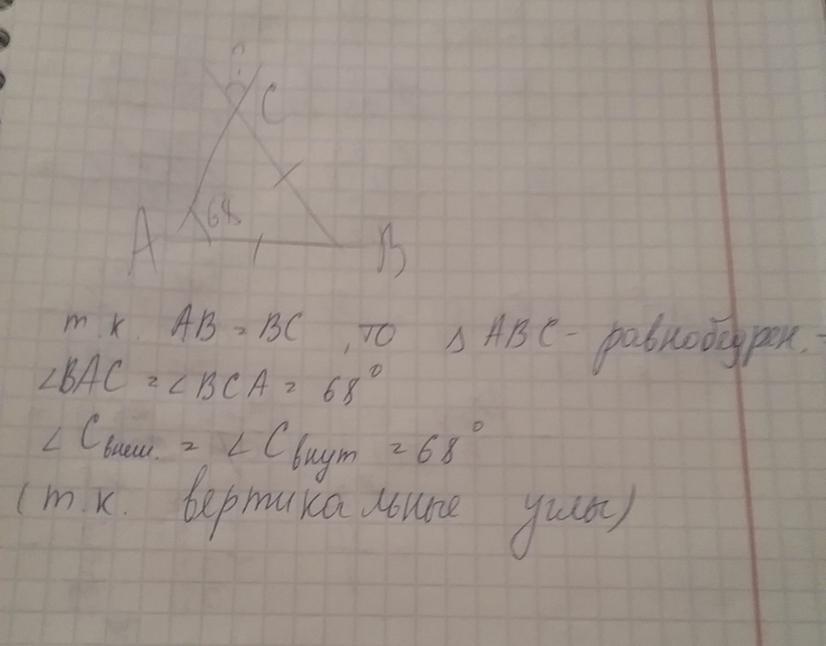 b с обоих сторон сокращается и получается: а=с => c=68 градусов
