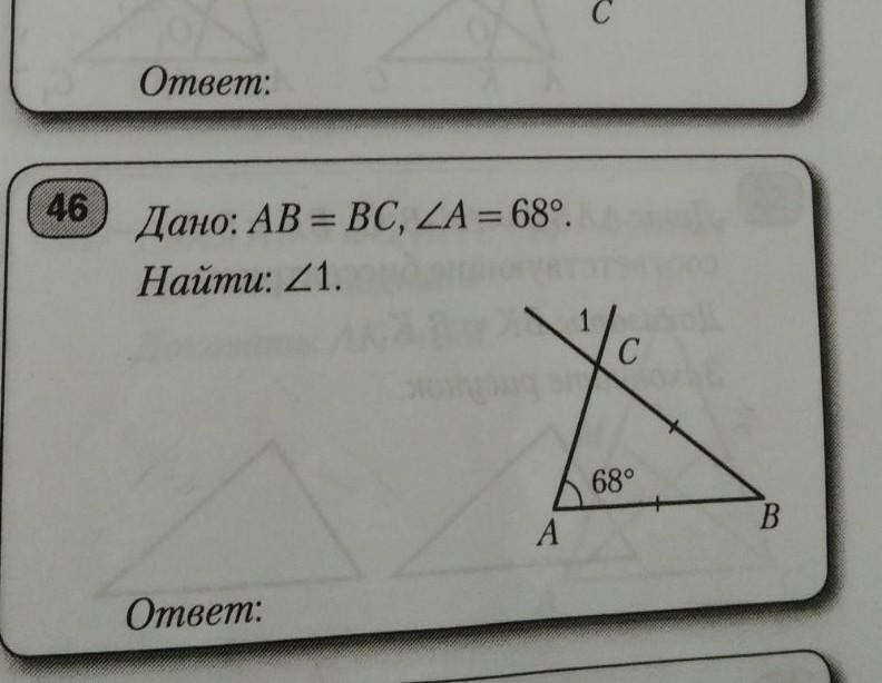 угол 1 равен углу С как вертикальные, следовательно угол 1 равен 68 градусам