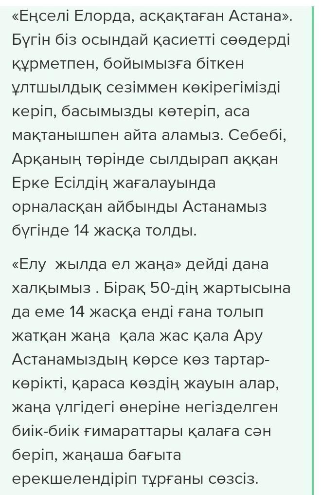 «Астананың көрікті жерлері» туралы бейнежазбаны сілтемені басып көріп, «Ару қала-Астана» тақырыбына қыстырма, қаратпа, одағай сөздерді еркін қолданып, әңгіме жаз.