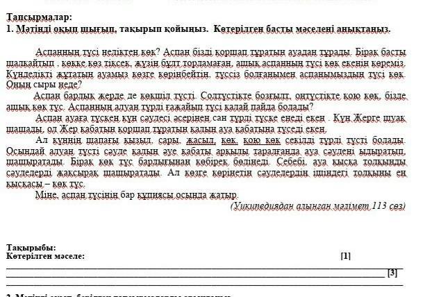 <<Қазақ тілі>> ТЖБ КӨМЕК 1-тапсырма мәтінді оқып шығып,тақырып қойыңыз.Көтерілген басты мәселені анықтаңыз.