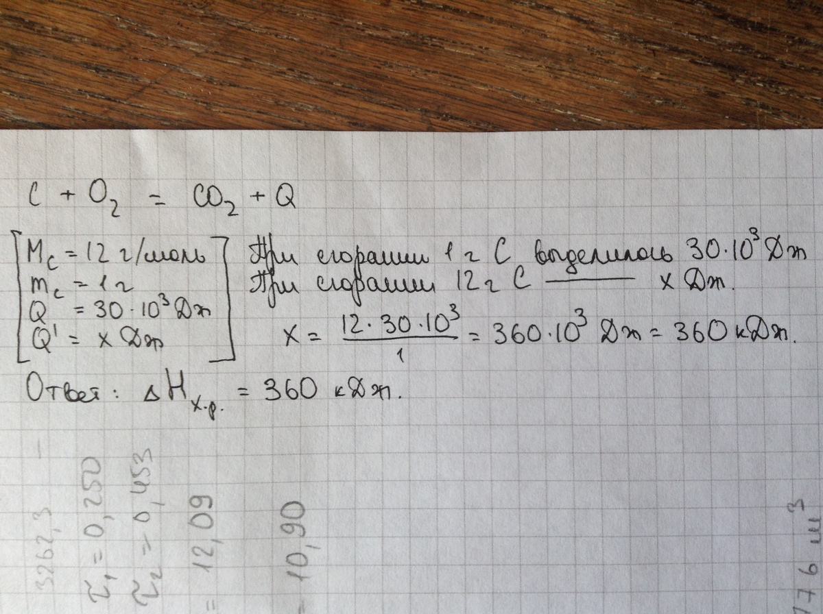 Вычислить энтальпию сгорания углерода, если при сгорании 1г углерода выделилось 30 кДж тепла