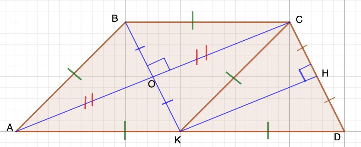 ⇒АВСК - ромб