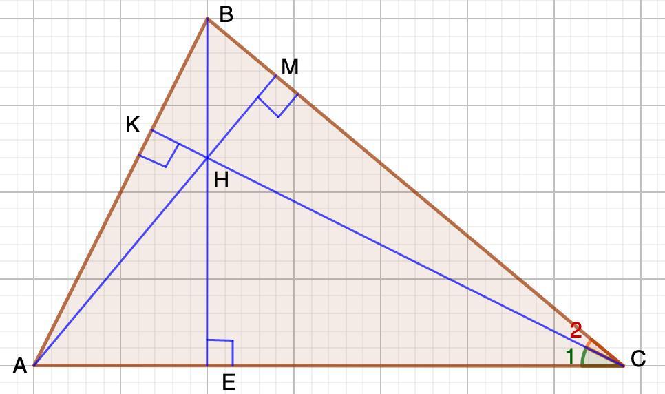 1. Дано: H — ортоцентр остроугольного ΔABC, ,AH⋅BC=9, BH⋅AC=30.