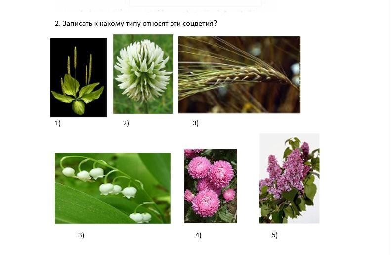 1) Запишите к какому типу относятся эти соцветия (то что прикреплено)