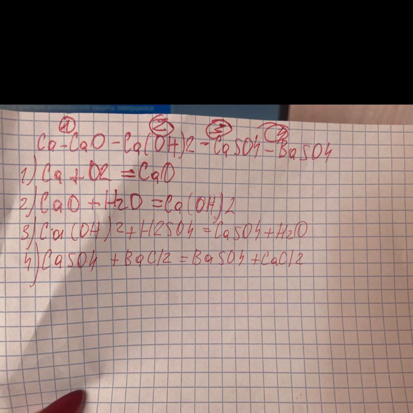 Осуществите следующую цепочку превращений Для реакций обмена составьте ионые уравнения Ca -CaO -Ca(OH)2 -CaSo4 -BaSo4 Даю 50 баллов !!!!!