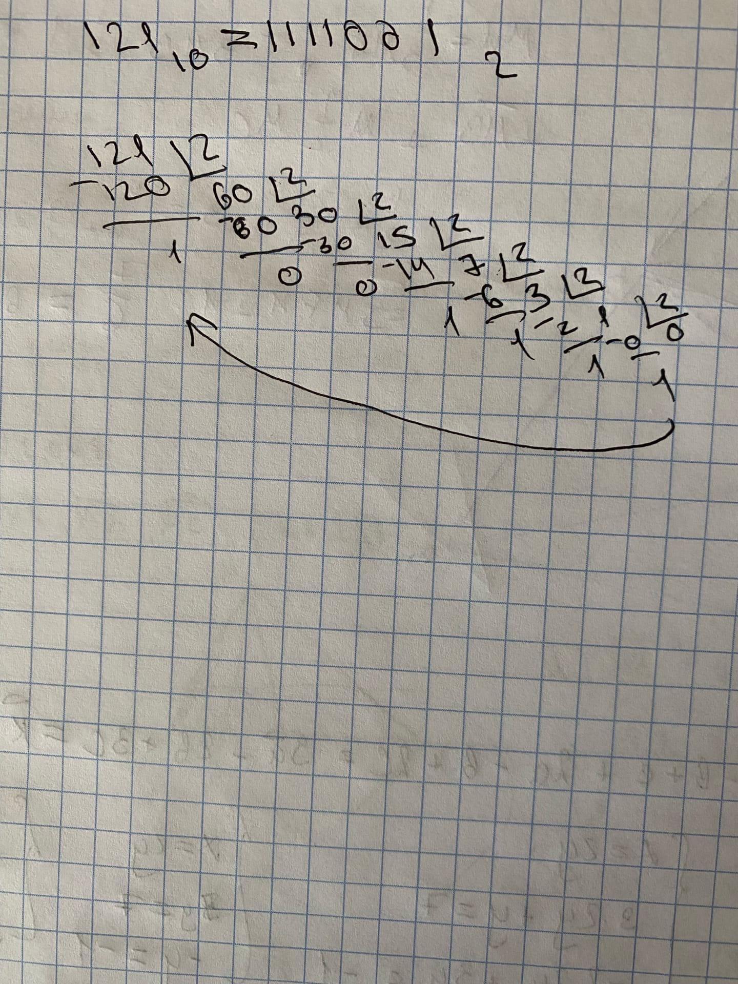число данное в 10 системе счисления на 2 пока в результате не будет 0.