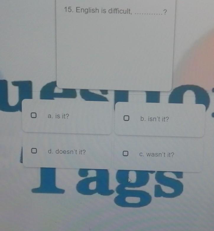 b. isn’t it Потому что в вопросы is значит мы берём этот глагол и делаем отрицательным