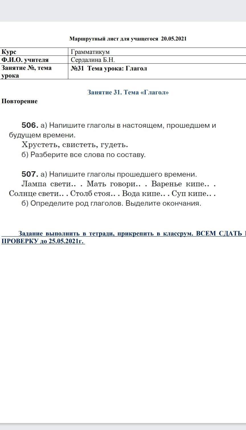 б) Окончание выделено заглавной буквой или □ если оно нулевое. Род написан после каждого глагола.