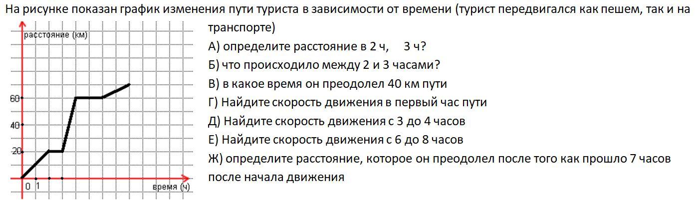 А) Через 2 часа и 3 часа он был на расстоянии 20 км. За этот час расстояние не изменилось потому что скорее всего он сделал остановку.