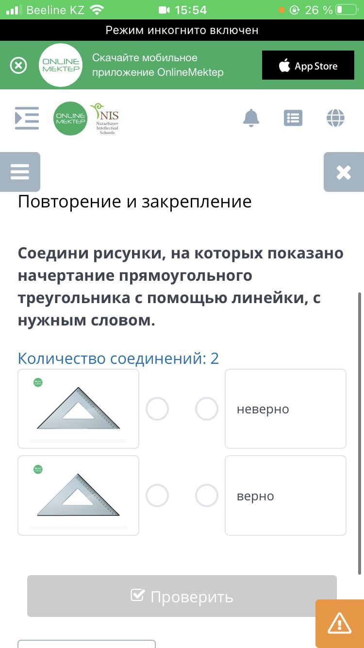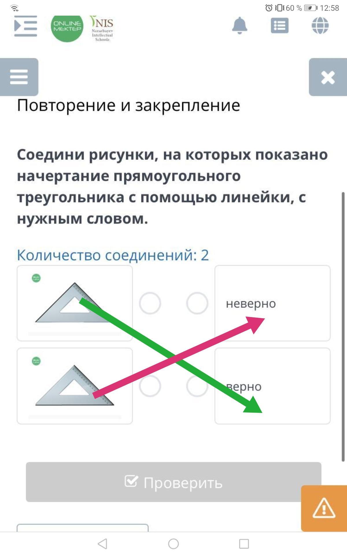 Соедини рисунки, на которых показано начертание прямоугольного треугольника с помощью линейки, с нужным словом.