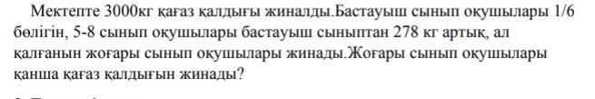 Бастауыш сынып-1/6 болиги=3000/6=500