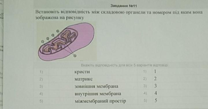 Встановіть відповідність між складовою органели та номером під яким вона зображена на рисунку.