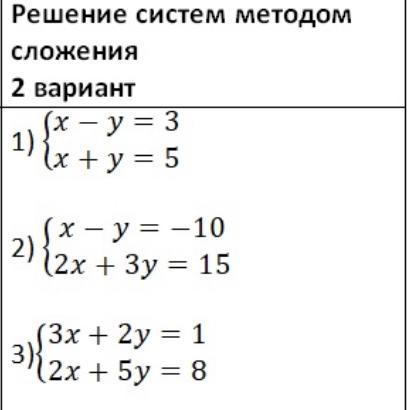 x+y=5 Сложим уравнения и получим, что 2x=8 => x=4, значит y=1
