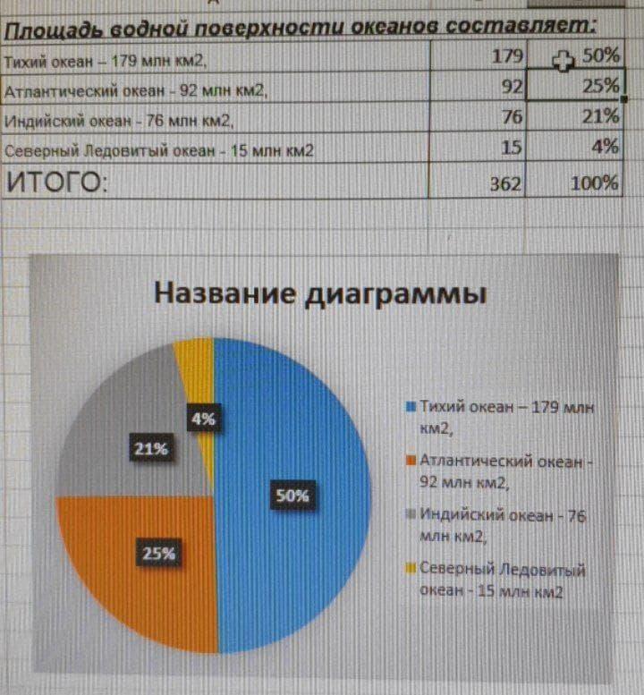 Общая площадь океанов: 179+92+76+15=362 млн км²