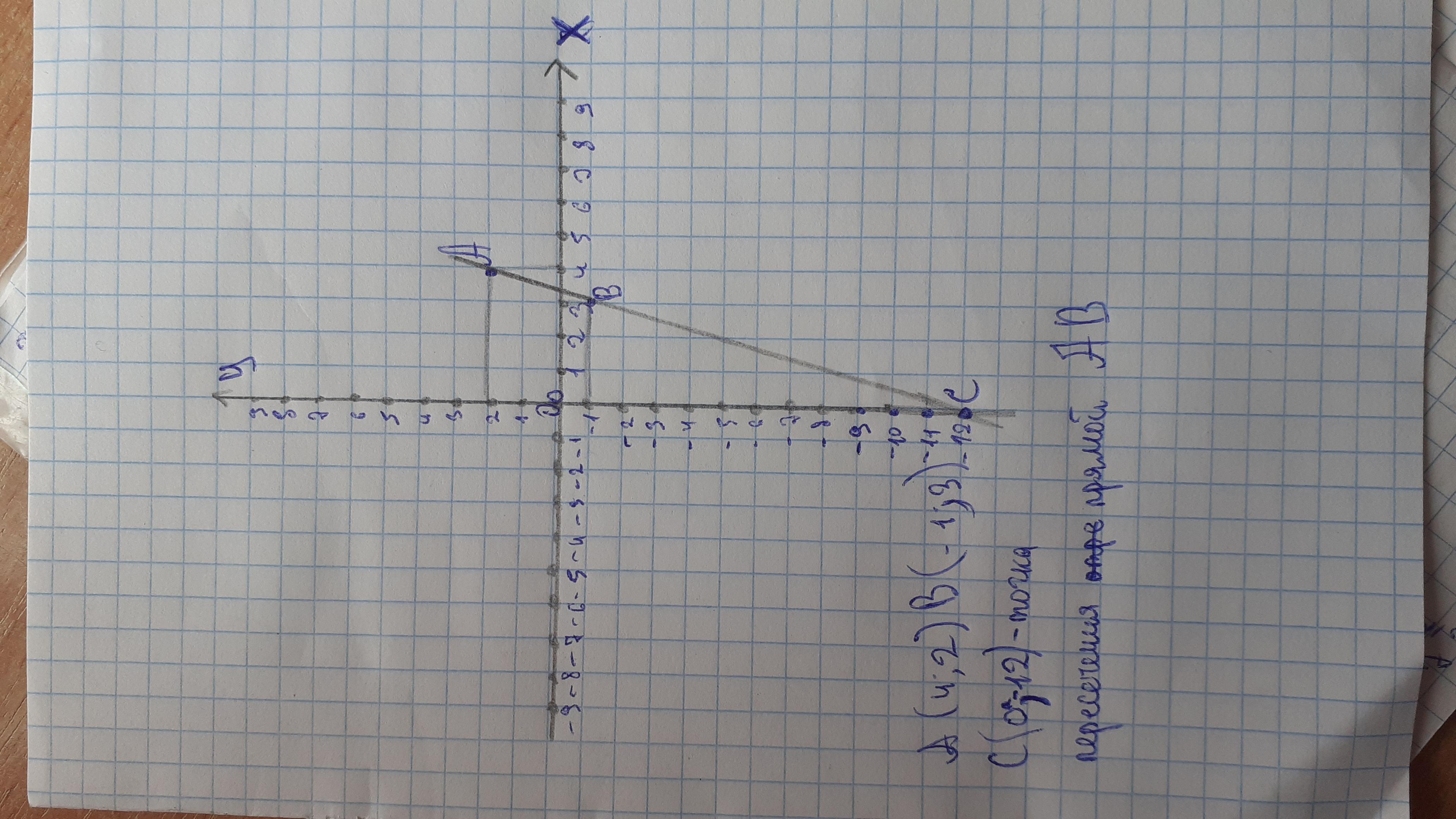 Дано точки А(4;2) та В(-1;3) знайти координати точки перетину відрізка АВ з вісью абцис