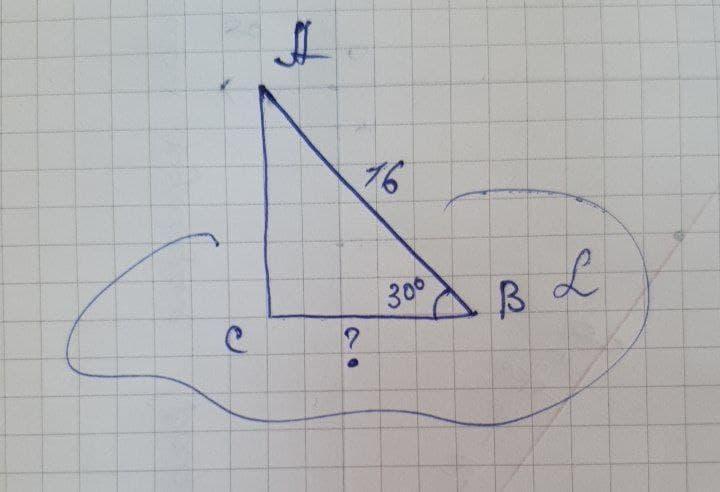 Наклонная АВ, проведенная из точки А к плоскости, равна 16см. Чему равна проекция наклонной на плоскость, если угол между прямой АВ и плоскостью равен 30°?