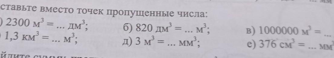 1000000 м3 = 1000000000дм3 ( 1 м3= 1000 см3)