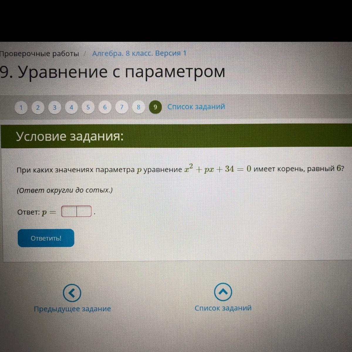 x² + px + 34 = 0 ; x₁ = 6 ; p - ?