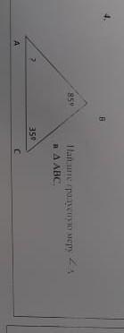 Так как сумма углов треугольника всегда равна 180 градусам, следовательно угол А= 180-(35+85)=60