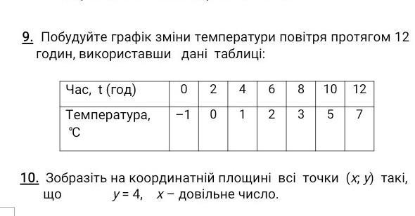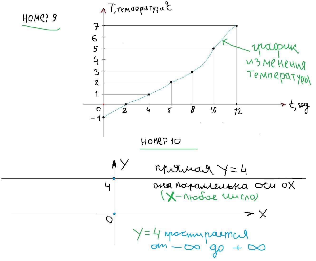 Прилагаю фото, но строй поаккуратней и на разлинованном листе. (Обрати внимание, что в девятом задании график является плавной линией с некоторыми изгибами, а не строгой прямой)