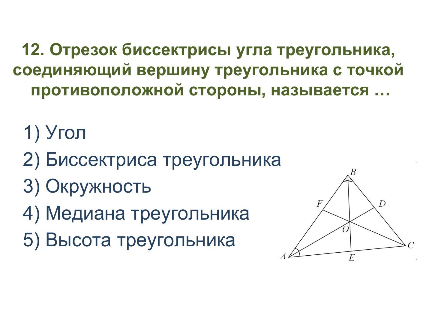 Биссектриса треугольника-отрезок биссектрисы угла треугольника, соединяющий вершину треугольника с точкой противоположной стороны.