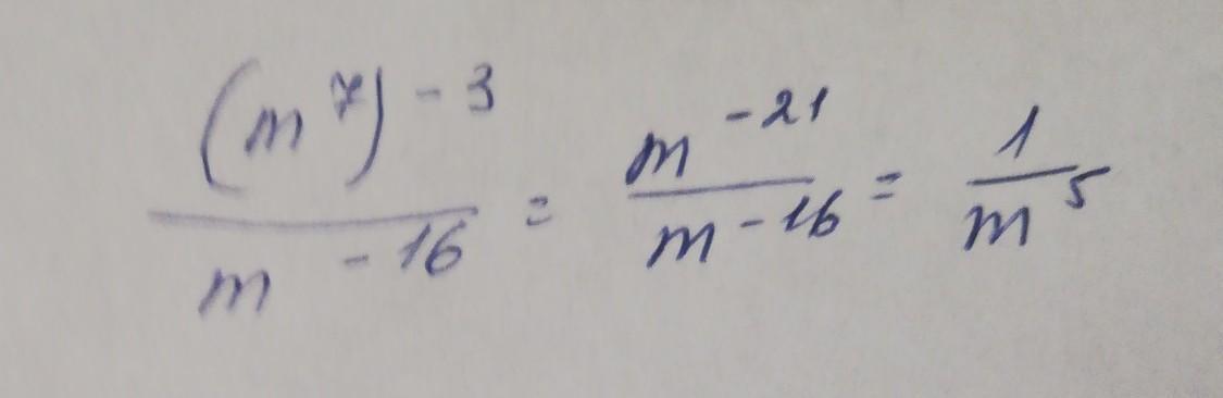 Подайте у вигляді степеня вираз (m⁷)-³:m-¹⁶=