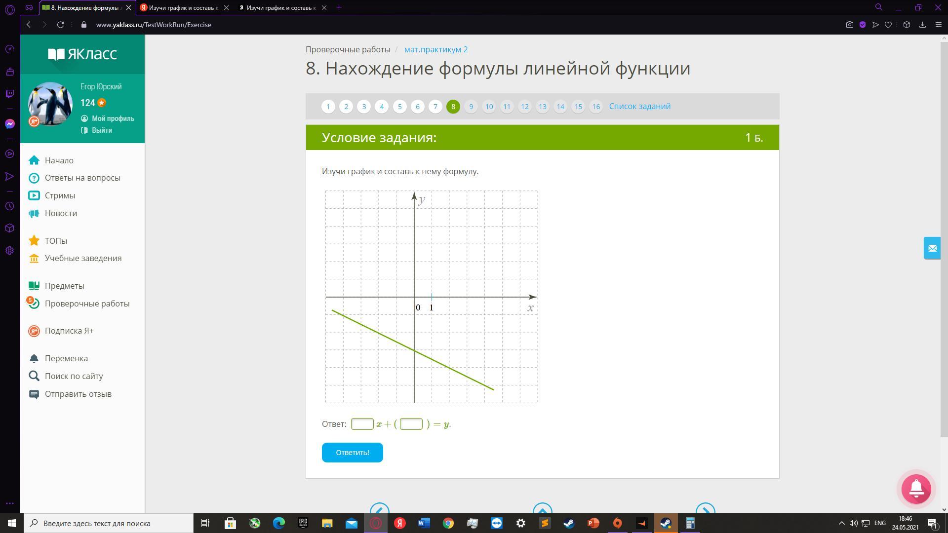 Составим систему уравнений, подставив вместо координа у и х координаты указанных выше точек.