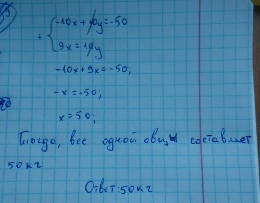 В отаре 95 овец, все они весят одинаково. 50 овец подстригли (с каждой овцы получили по 5 кг), и теперь подстриженные в сумме весят столько же, сколько остальные неподстриженные овцы. Каков был первоначальный вес одной овцы?