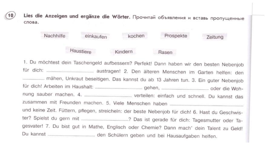Lies die Anzeigen und ergänze die Wörter. Прочитай объявления и вставь пропущенные слова. Nachhilfe einkaufen kochen Prospekte Zeitung Haustiere Kindern Rasen
