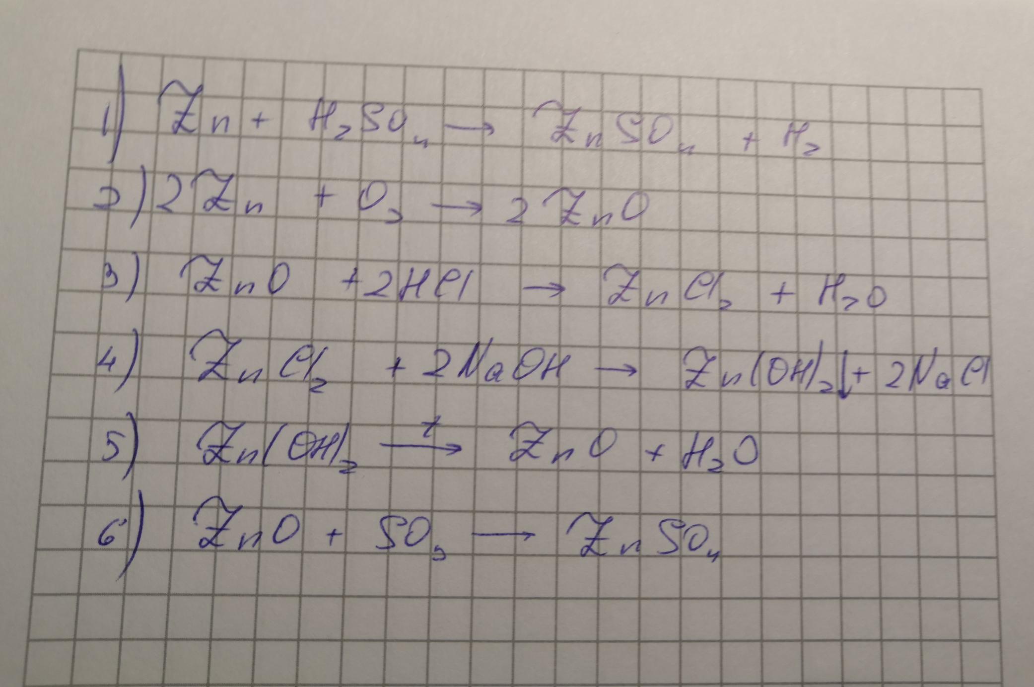 Zn→ZnO→ZnCl2→Zn(OH)2→ZnO