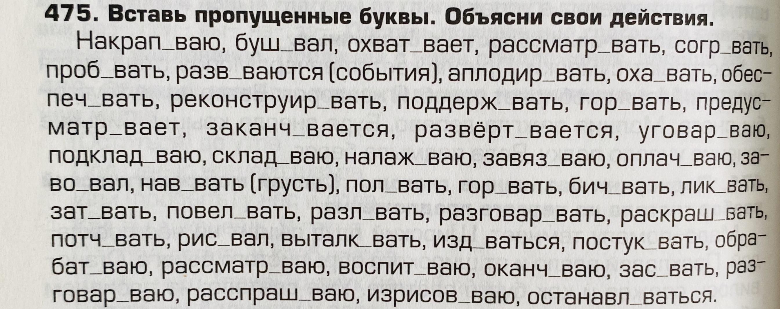 накрапываю, бушевал, охватывает, рассматривать, согревать, пробовать, развиваются, аплодировать, охаивать, обеспечивать, реконструировать, поддерживать, горевать, предусматривает, заканчивается, развертывается, уговариваю, подкладываю, складываю, налаживаю, завязываю, оплачиваю, завоевал, навевать, поливать, горевать, бичевать, ликовать, затевать, повеливать, разливать, разговаривать, раскрашивать, потчевать, рисовал, выталкивать, издеваться, постукивать, обрабатываю, рассматриваю, воспитываю, оканчиваю, засевать, разговариваю, расспрашиваю, изрисовываю, останавливаться
