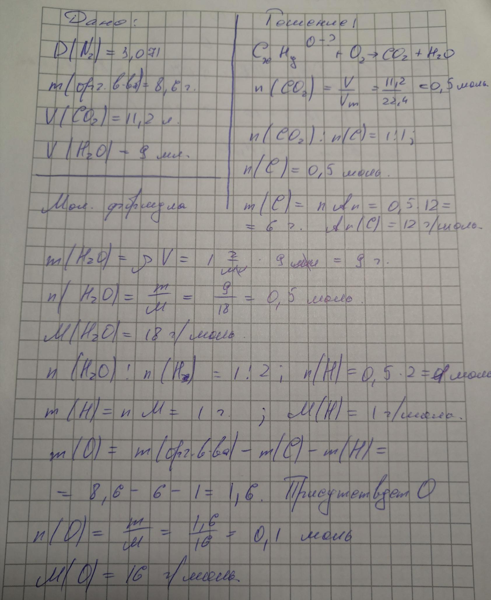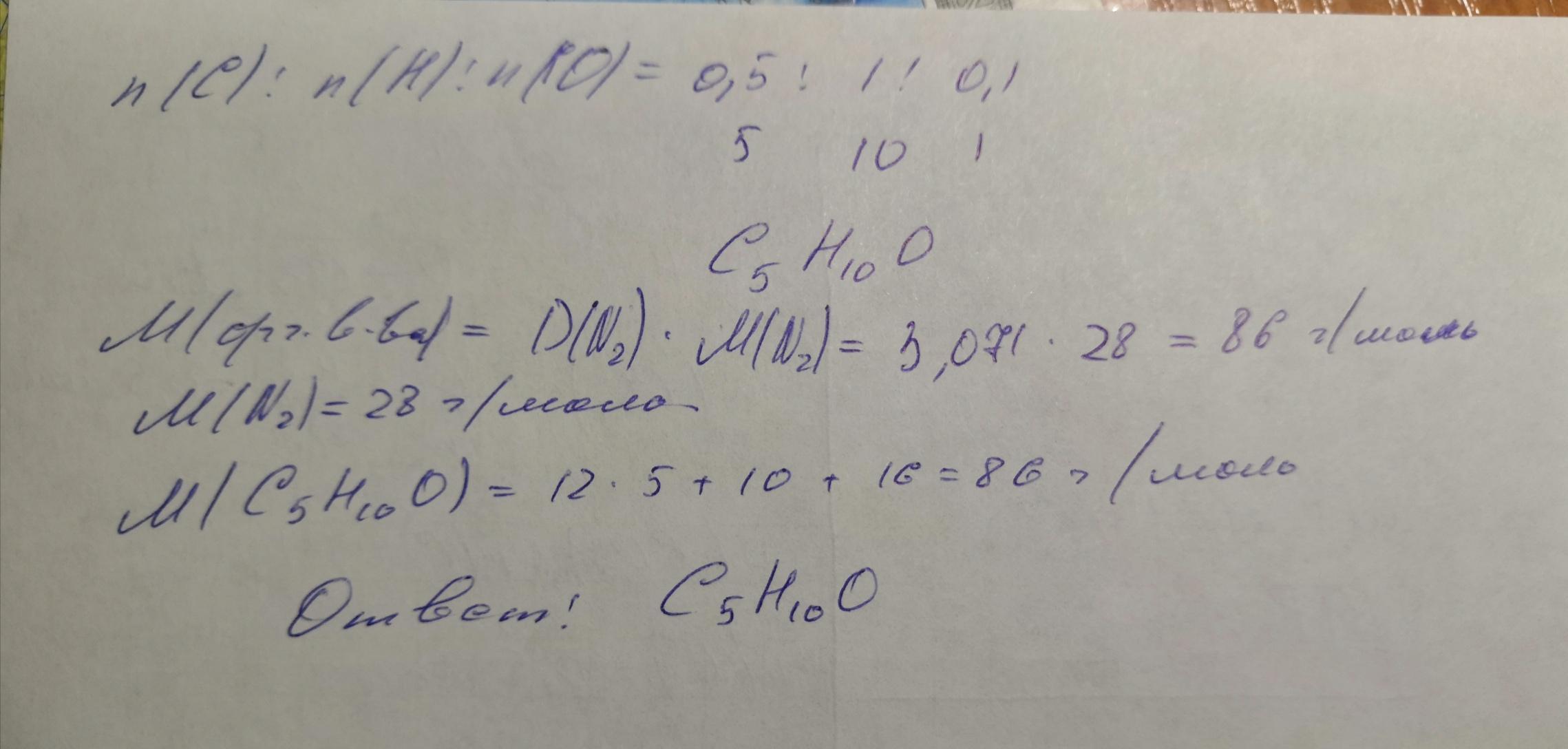 5) M(CxHyOz) = D(N2) * M(N2) =3.071 * 28 = 85,988 г/моль ≈ 86 г/моль