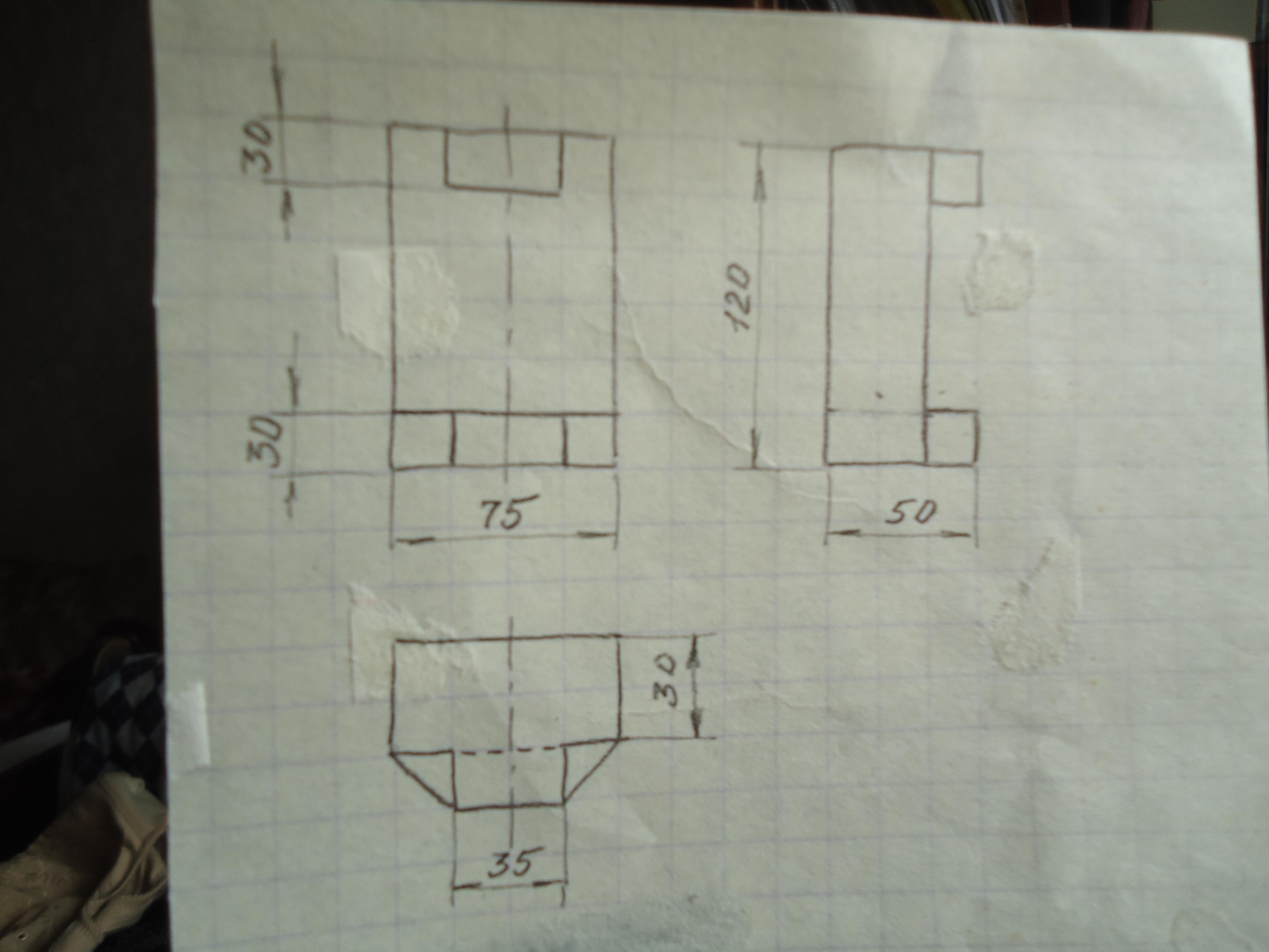 Чертёж из трёх проекций, выполненный от руки с сохранением пропорций на глаз, смотрите на фото.
