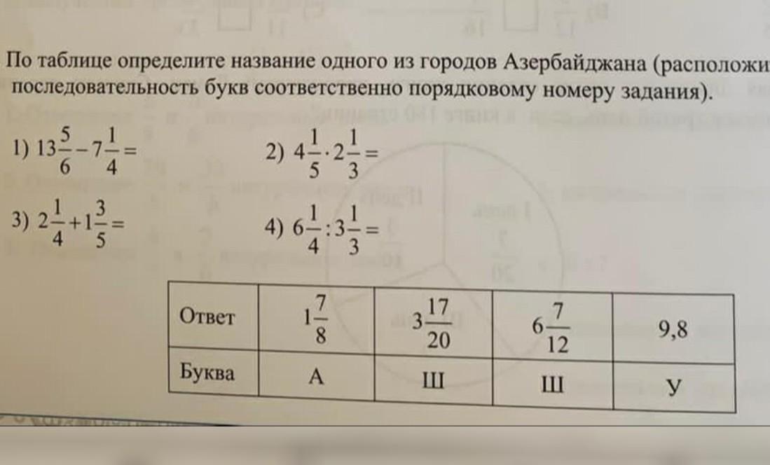 По таблице определите название одного из городов Азербайджана.Расположите последовательность букв соответственно порядковому номеру задания.