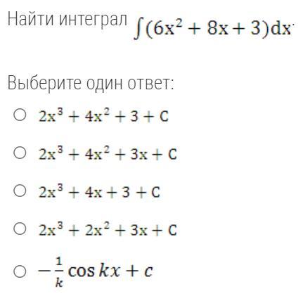 ∫( 6x² + 8x + 3 )dx = 2x³ + 4x² + 3x + C .