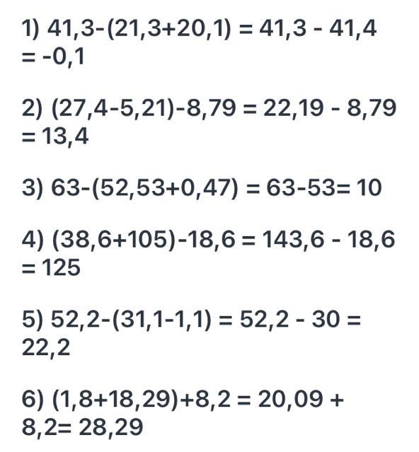 1) 41,3-(21,3+20,1) = 41,3 - 41,4 = -0,1