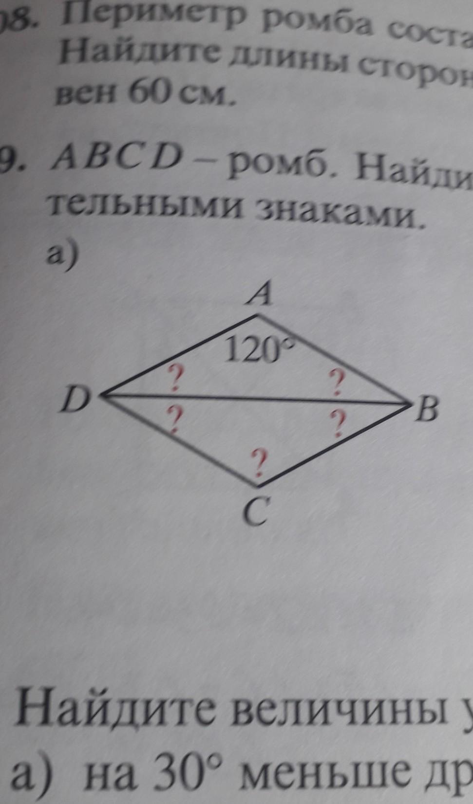 Ответ: DAB = DCB = 120°, ADB = ABD = CDB = CBD = 30°