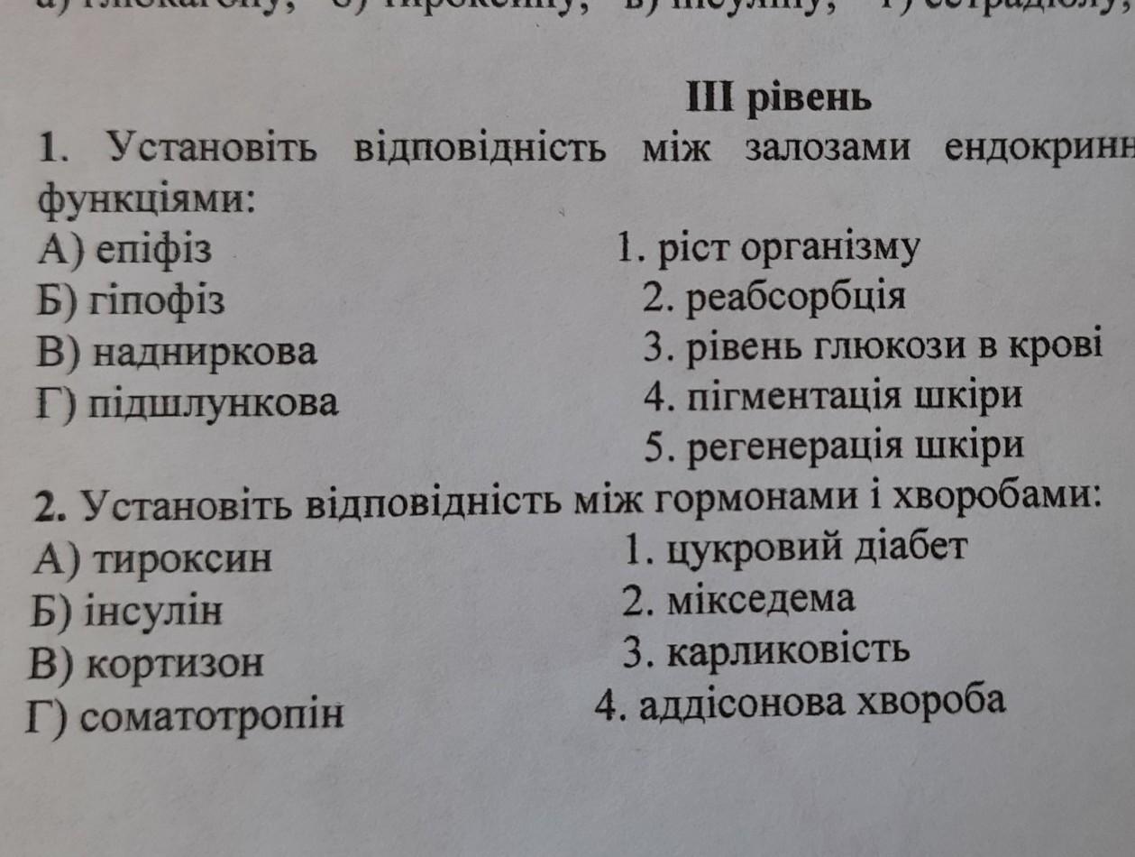 1) Установіть відповідність між залозами ендокринної системи та їх функціями