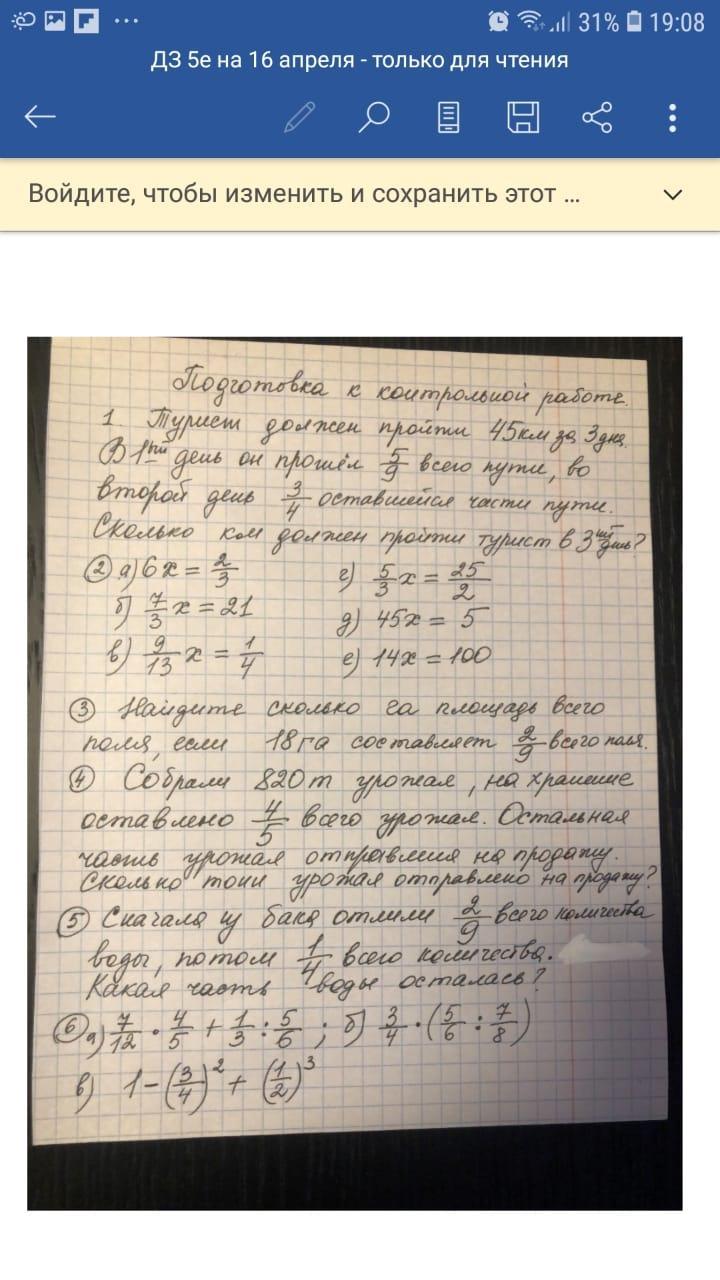 1) Прошел в первый день: 5/9 · 45 = 25 км.