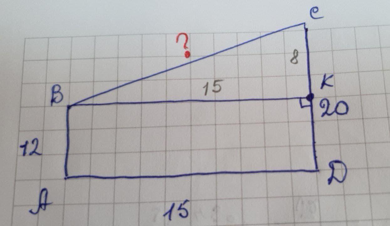 Проведём ВК⊥СД. АВКД - прямоугольник ⇒ВК=АД=15.