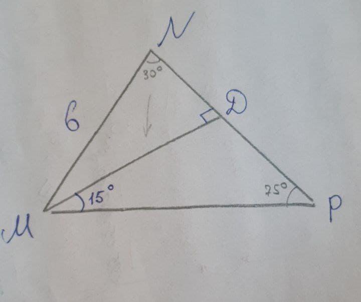 У трикутнику MNP MN =NP =6см.Знайдіть довжину висоти MD якп утворює з основою MP кут, який дорівнює 15 градусів
