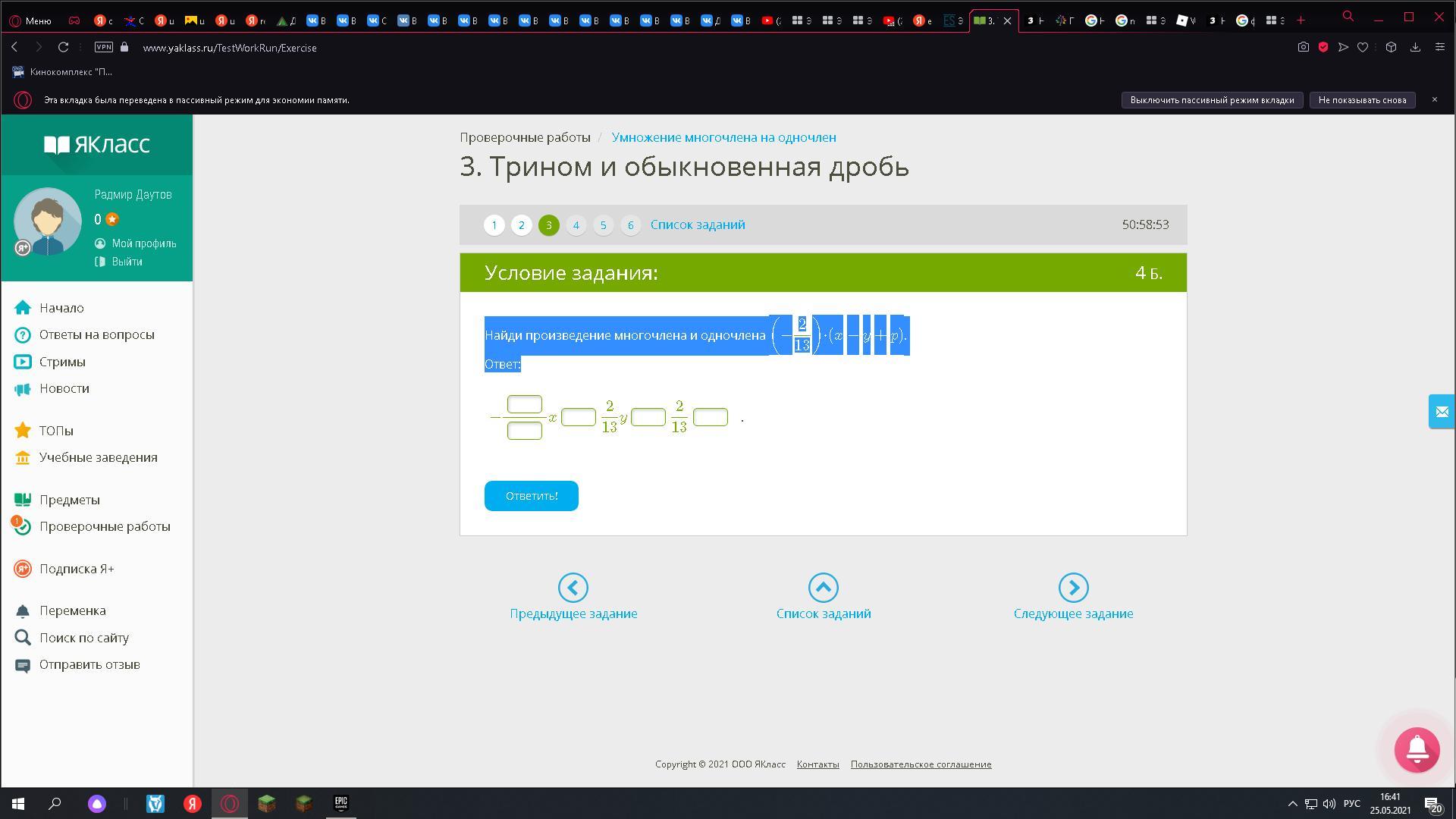 ответ: -2/13х+2/13у-2/13р