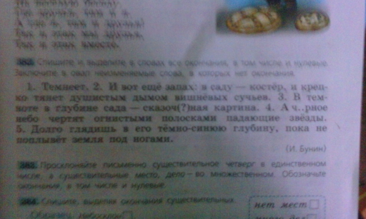 Темнеет. И вот еще запах(нулев.): в саду - костер(нулев.), и крепко тянет душистым дымом вишневых сучьев. В темноте в глубине сада - сказочная картина. А черное небо чертят огнистыми полосками падающие звезды. Долго глядишь в его темно-синюю глубину, пока не поплывет земля под ногами.