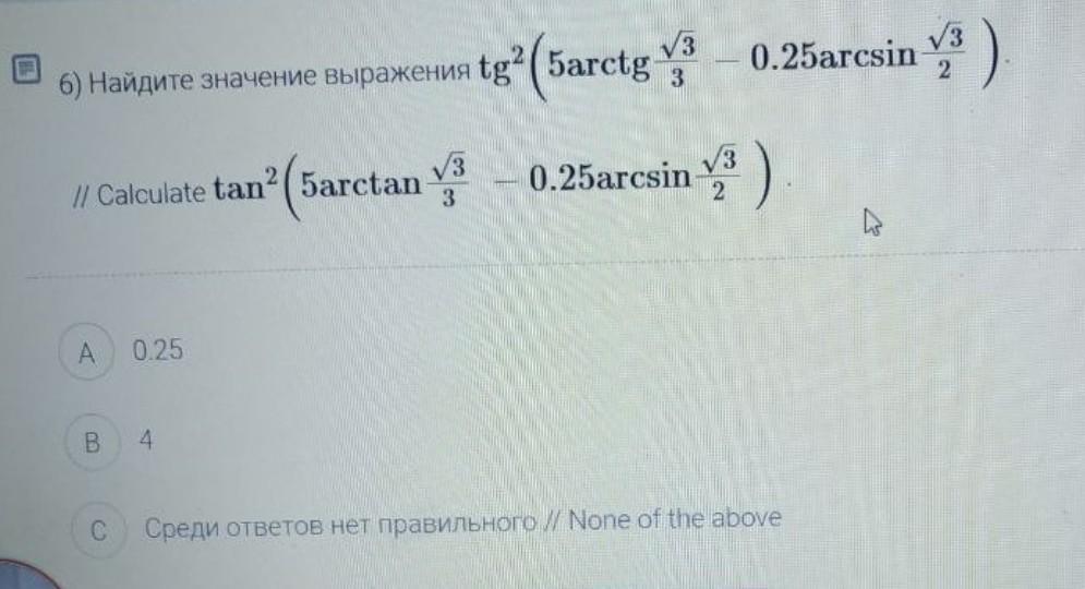 tg²(5*30° - 0.25*60°)=1