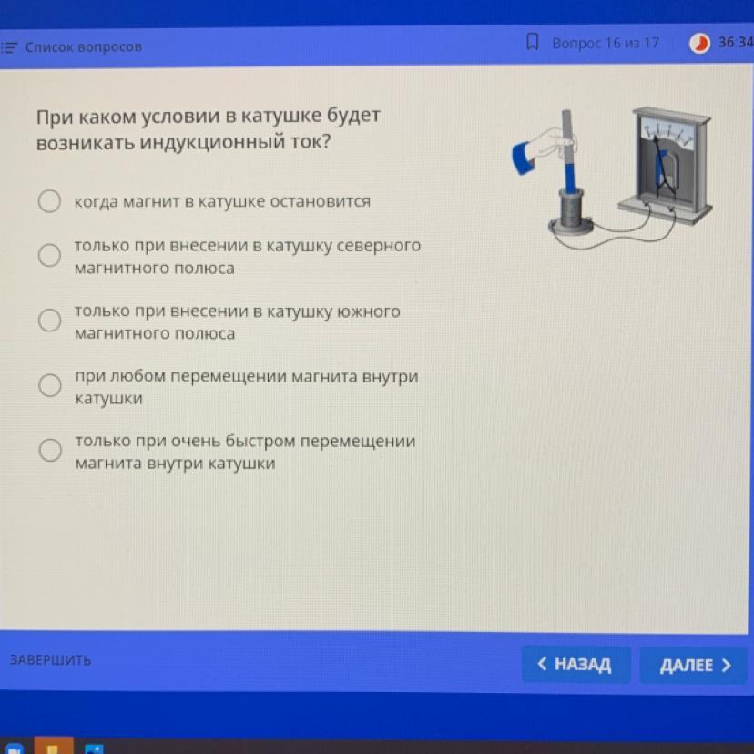 Только при внесении в катушку южного магнитного полюса.