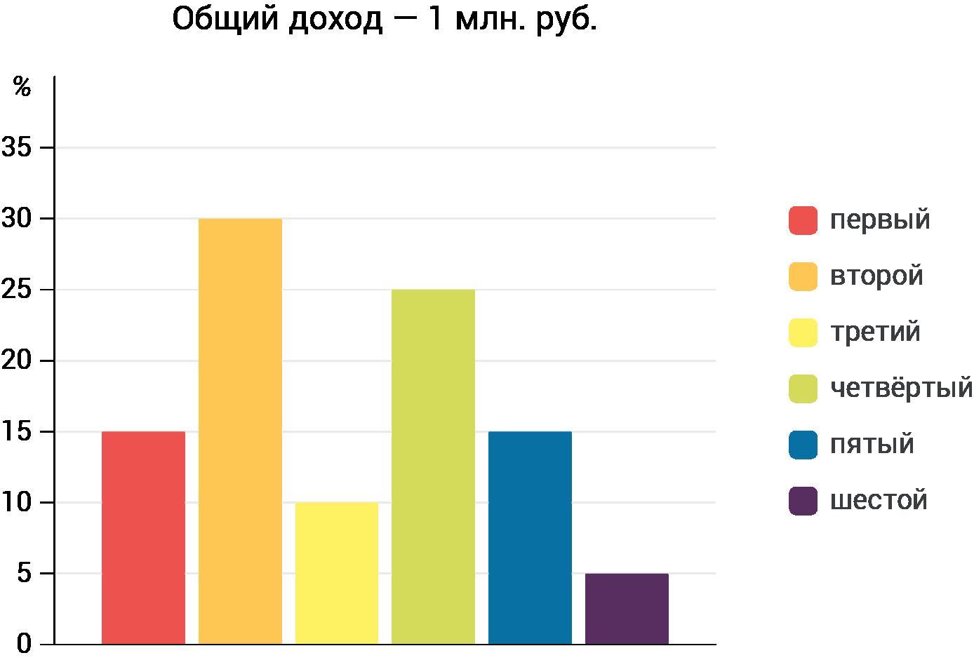 На диаграмме представлены данные по доходу шести акционеров компании «Успех». Сколько прибыли получил каждый акционер?