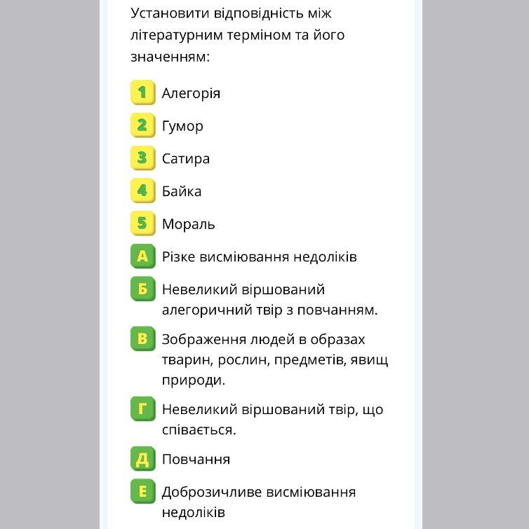 Відповідь: 1. Б; 2. Е; 3. А; 4. Б; 5. Д