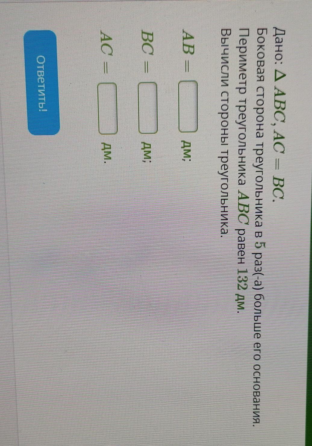 Ответ: AB = 12 дм; BC = 60 дм; AC = 60 дм.