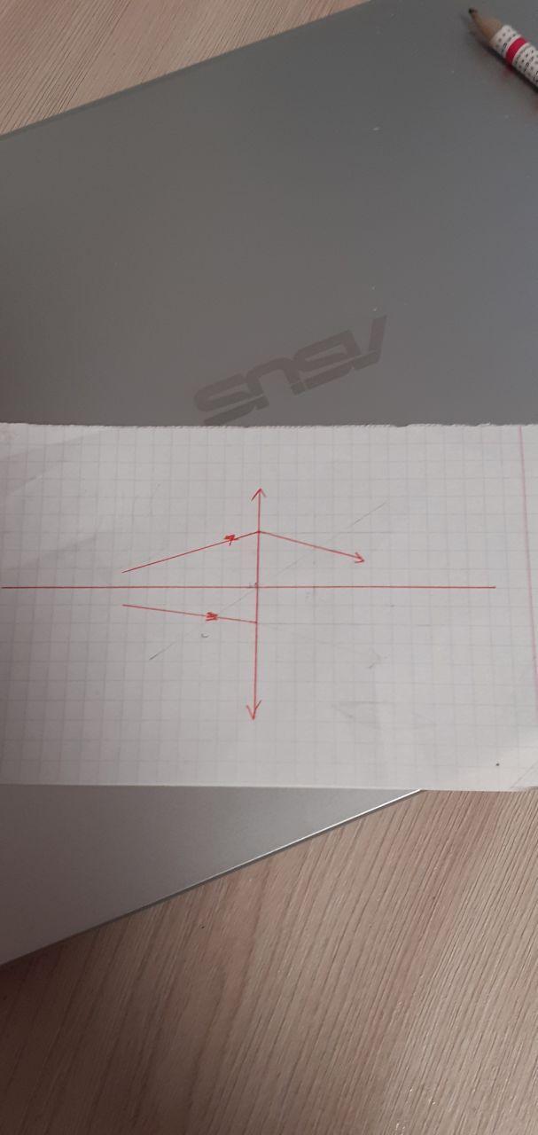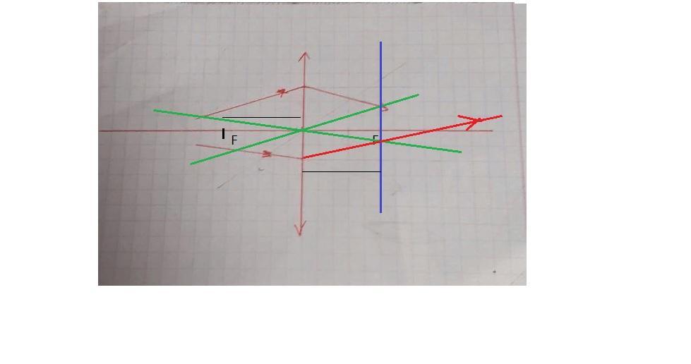 Синяя линия - фокальная плоскость, которую находим при помощи верхнего луча.