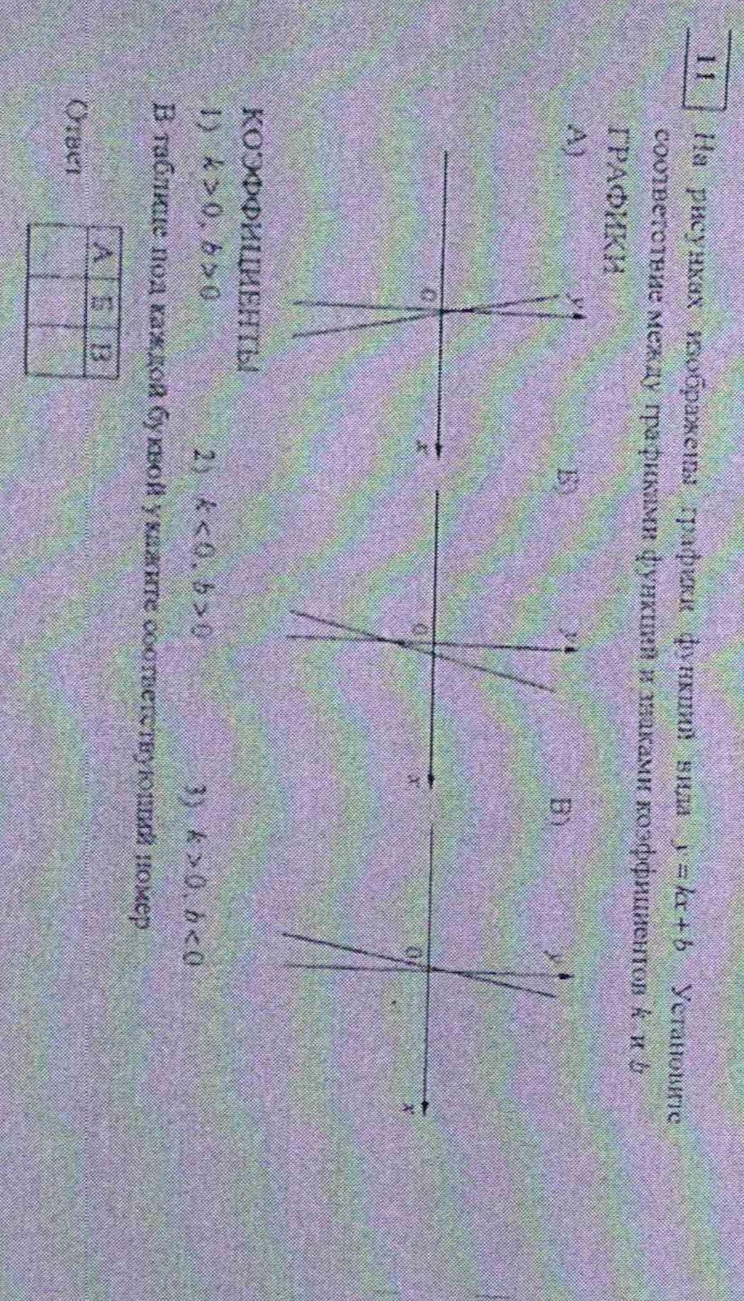 1) k < 0, b < 0. Прямая образует тупой угол с Ox и имеет отрицательное смещение. Это график под буквой Б.